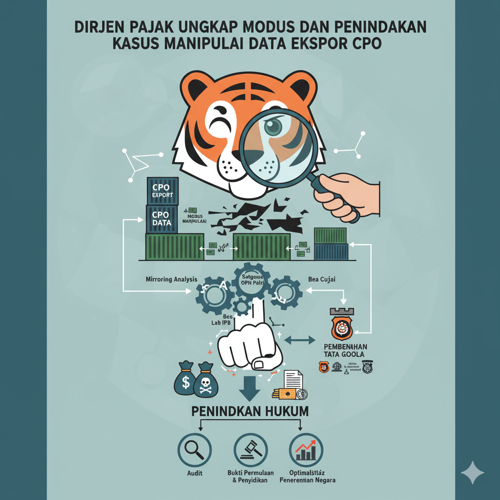 Direktorat Jenderal Pajak (DJP) Kementerian Keuangan dalam menangani kasus manipulasi data ekspor Crude Palm Oil (CPO) atau minyak kelapa sawit.