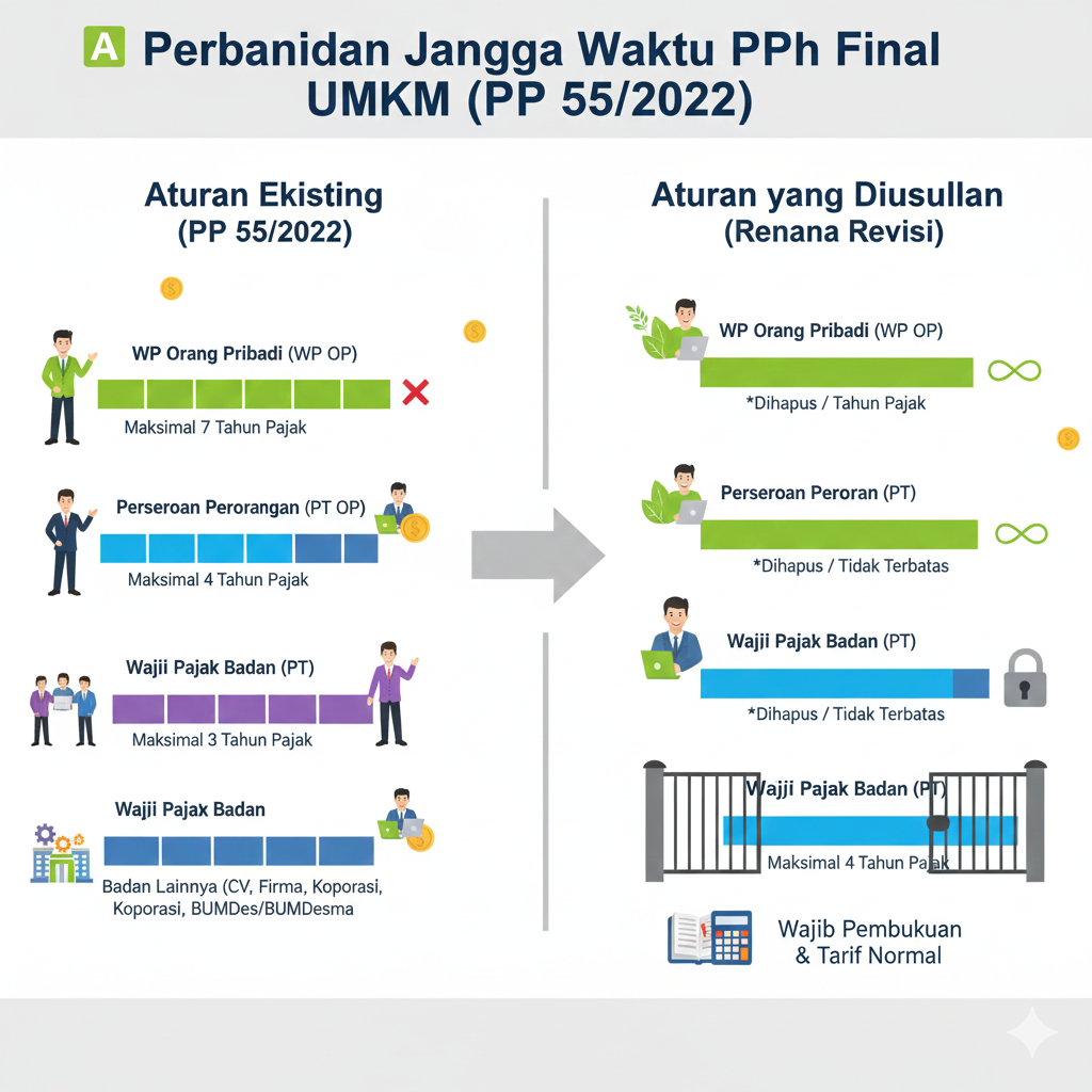 Perbandingan Jangka Waktu PPh Final UMKM (PP 55/2022)